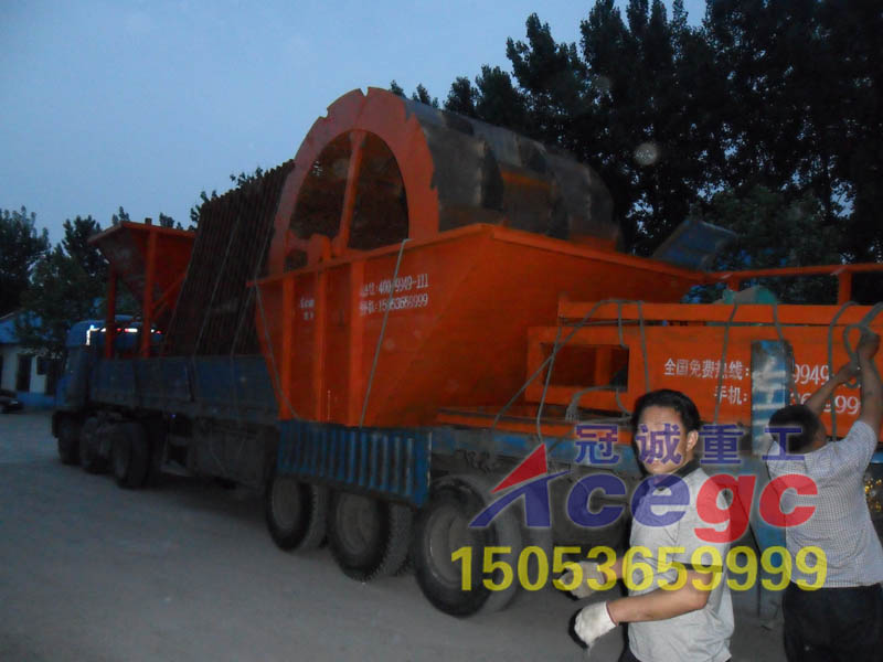 新型水輪洗石機是青州冠誠重工機械有限公司新研究開發(fā)的一種新式砂石清洗設備,它既可以洗石子,又可洗沙子.用途廣泛,市場需求量大。它能夠徹底清洗干凈石子里面的雜物,能在短時間內(nèi)突出產(chǎn)量,節(jié)省電力、人力、還有水資源。